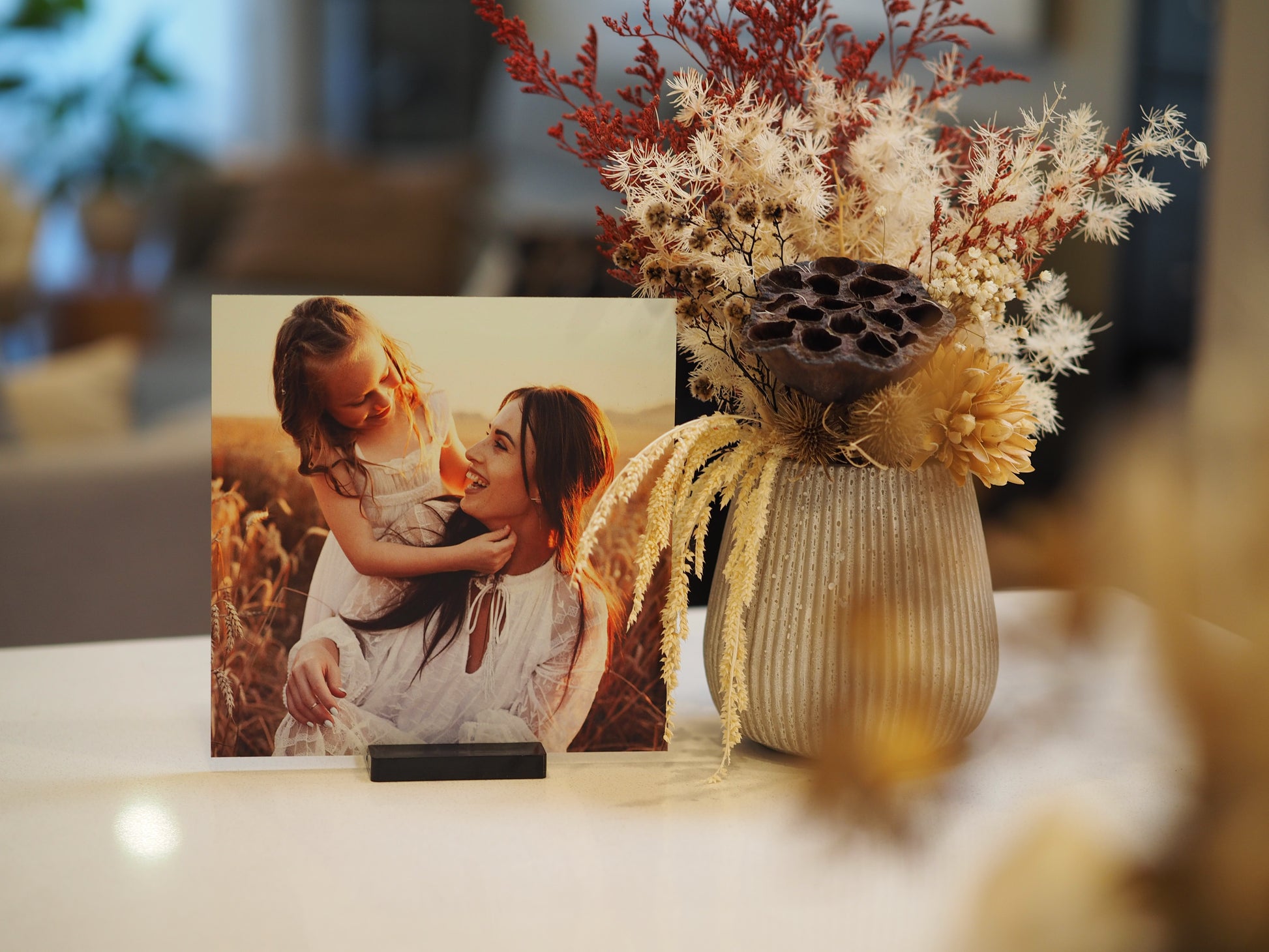 Give your home a personal touch by displaying your happiest and most precious memories. Our metal, wood and acrylic prints are sophisticated, durable, robust, and refined, making them the perfect gift or display for your treasured memories. These prints will go seamlessly with your décor. Whether you choose to display them on a stand or mounted on the wall.